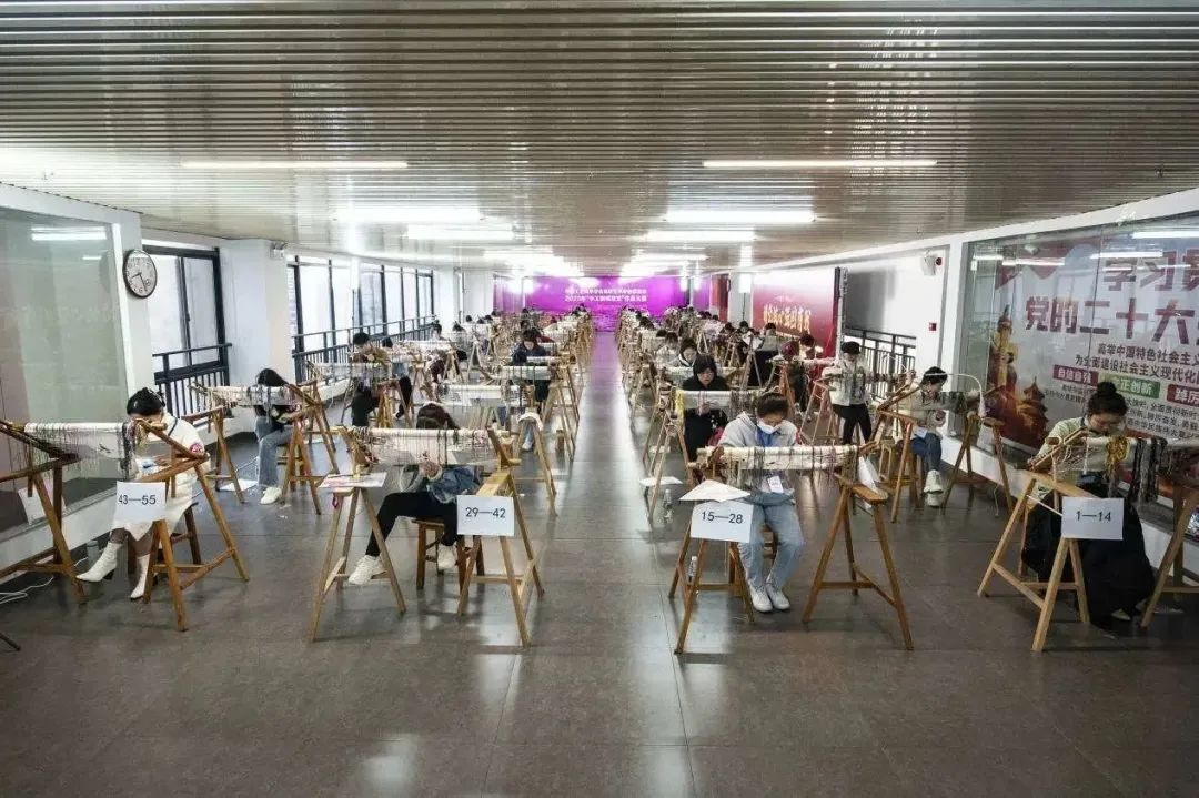 6日上午,参赛选手通过身份检录后,开始了长达10小时的技能实操考核。比赛现场,选手们满怀信心、各显身手,上绷、勾稿,并选用恰当针法、绣线进行作品绣制,一排排绣绷上,针起针落、丝线飞舞,指尖上传承的“针”功夫精彩纷呈,令人惊叹。7日上午,在完成技能实操考核后,选手们进行理论考试,该环节主要考核选手对刺绣工应知应会的刺绣基本理论知识。