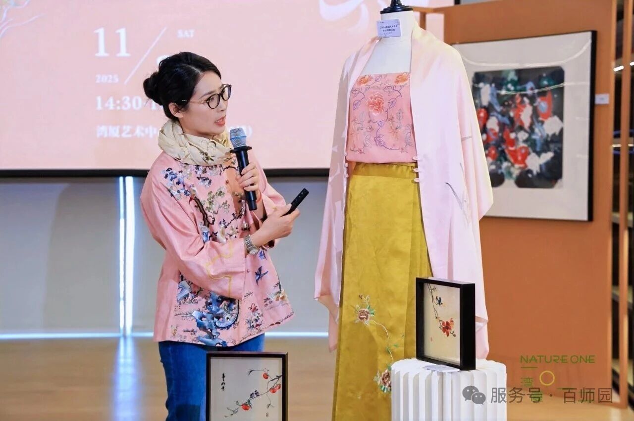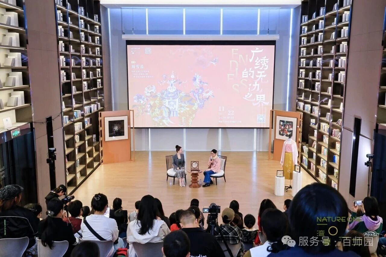 11月22日,湾厦1012联合百师园集团联合主办,蛇口街道公共事务中心、海岸社区党群服务中心、深圳湾社区党群服务中心联合协办的“非遗沙龙”第4期“Endless:广绣的无边之界”,特邀正高级工艺美术师、广东省工艺美术大师、广绣(雪花仿真绣)非遗传承人周雪清,围绕广绣技艺的发展历程,以及中西美学的对话与融合展开深度对谈,共同探讨传统刺绣在当代语境下的美学新篇。