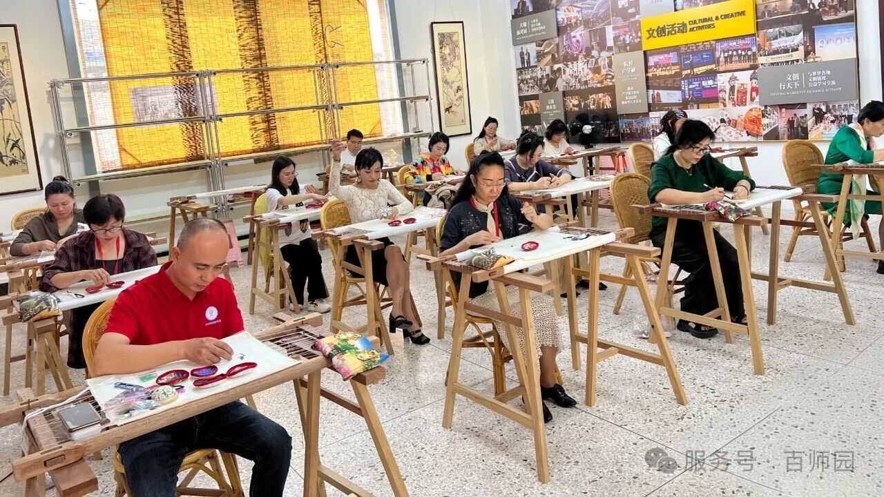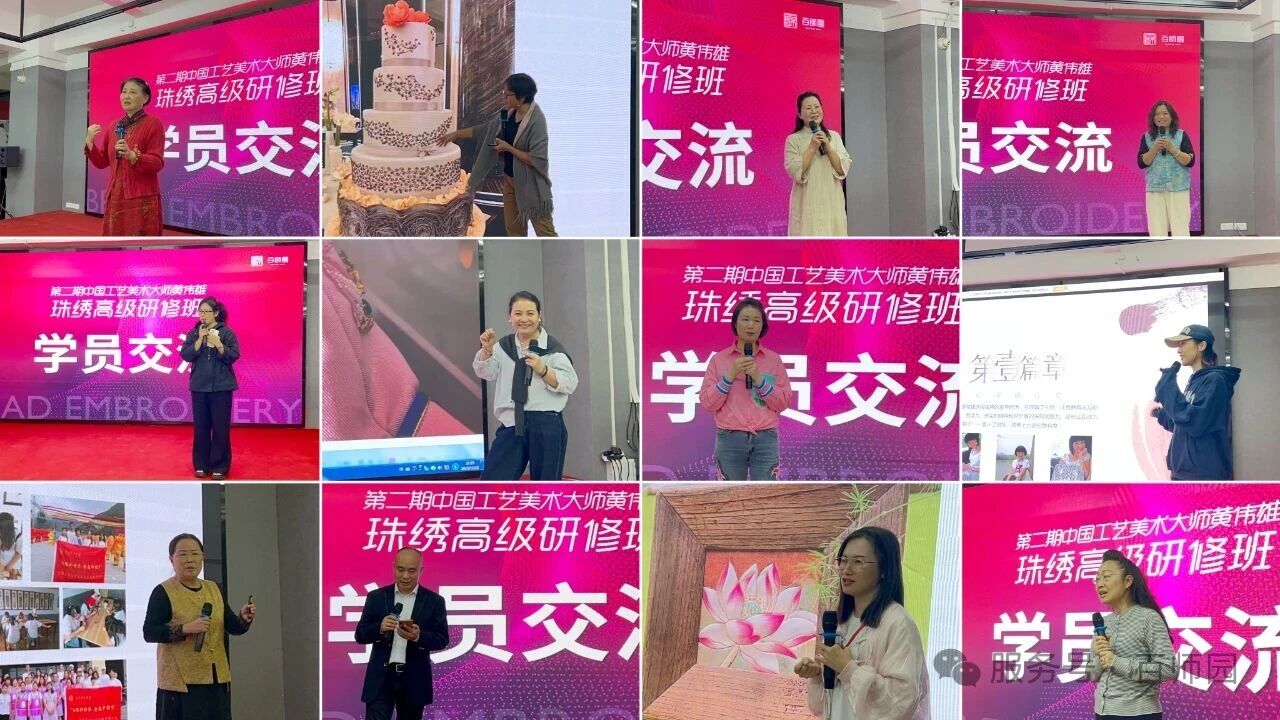 研修进程中,主办方接连推出《解码中国刺绣—筑牢民族智慧赋能中华民族共同体意识》主题讲座、“当代珠绣美学的创新与发展”座谈会及学员交流分享等多场活动,黄伟雄大师引领学员深化对非遗核心价值的认知,为学员开拓“非遗商业化”新路径,助力学员在技艺精进与思维迭代的双重维度上实现突破。