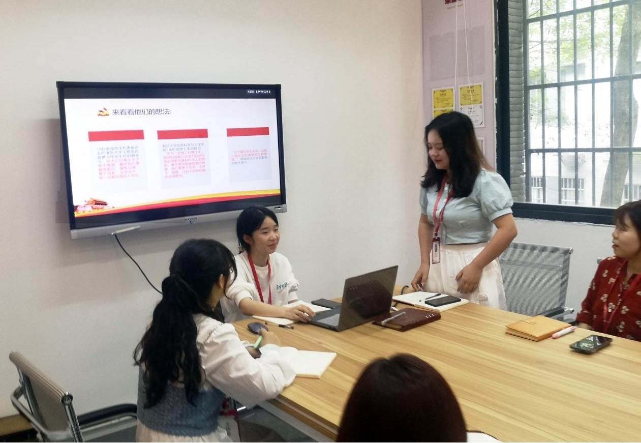 为了引导青年大学生树立正确的爱党爱民人生观,从党史学习中激发信仰、获得启发、汲取力量,学校每周开展学生干部学党史主题教育活动,5月第一周,学校团委学生干部学习“习近平总书记在清华大学考察时的重要讲话精神”,此次学习会议由校团委学生干部刘琼主持。