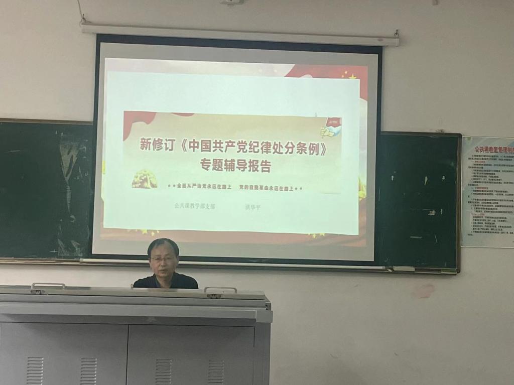 2023年12月,党中央正式颁布了经过修订的《中国共产党纪律处分条例》(以下简称《条例》)。为进一步严明党的政治纪律和政治规矩,推动党的各项纪律全面从严,学习好、宣传好、执行好《条例》,5月7日下午,支部书记洪华平为全体党员讲授《中国共产党纪律处分条例》专题党课。