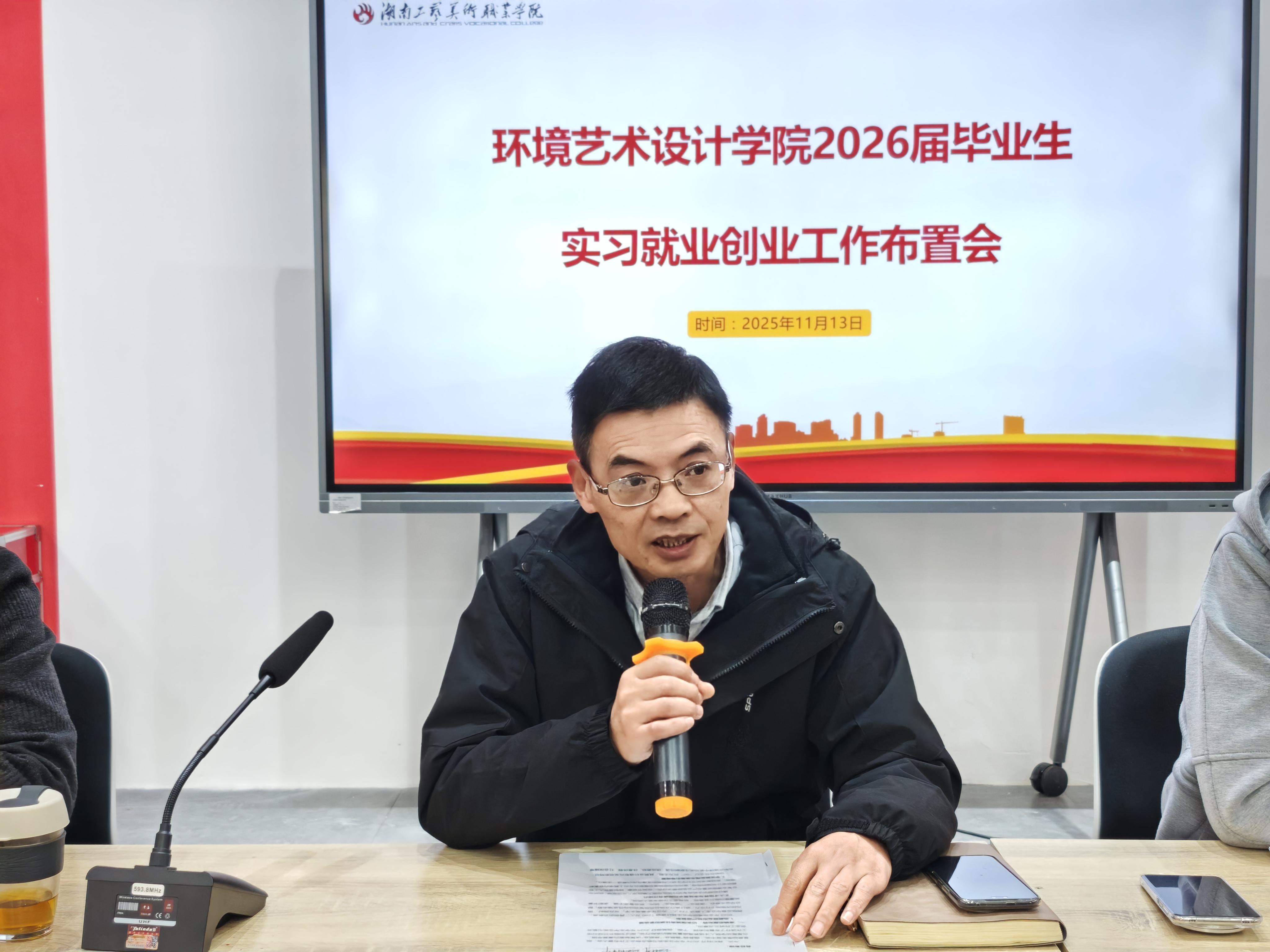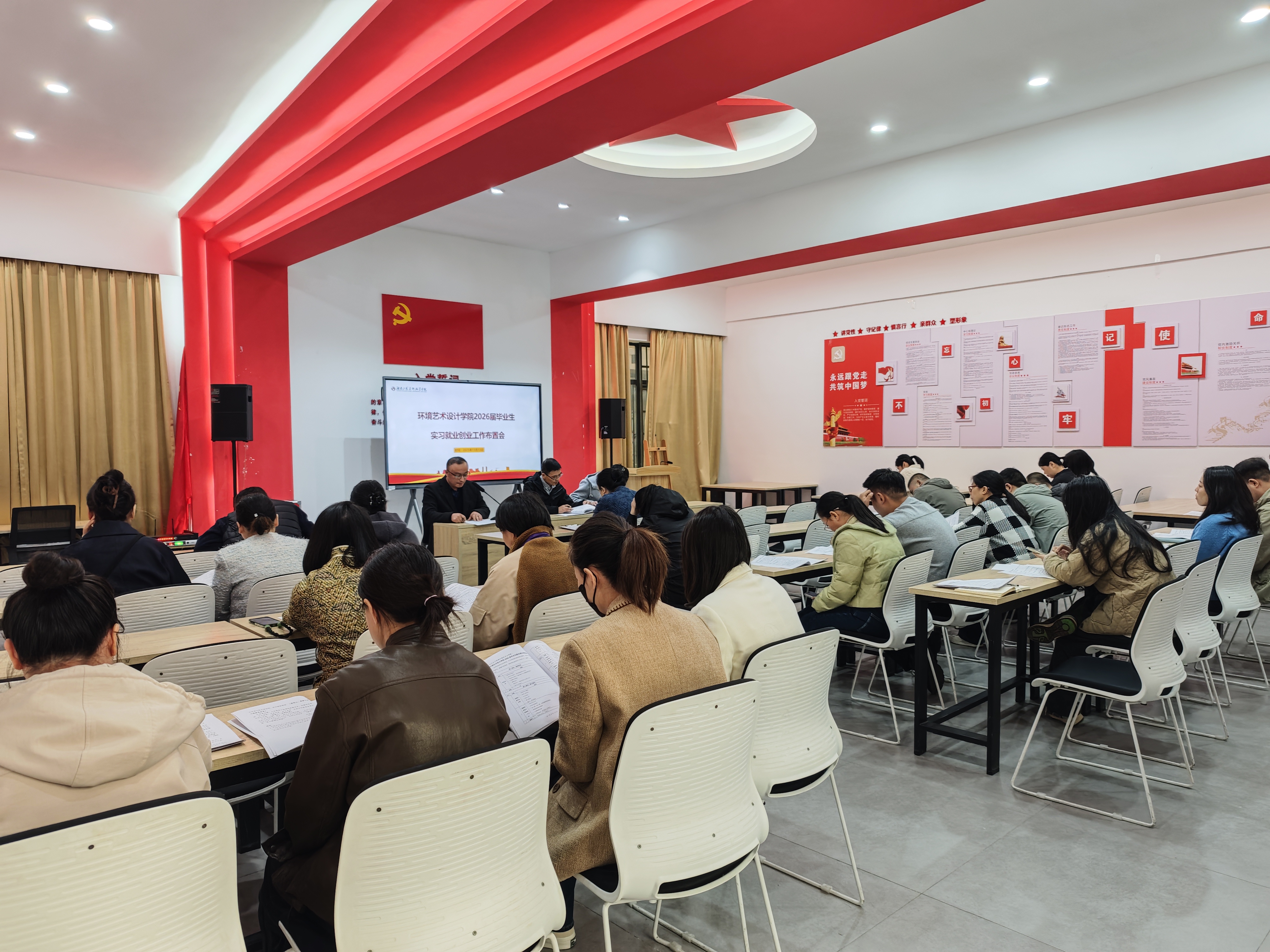 为全面推进2026届毕业生高质量就业,11月13日,环境艺术设计学院在尚美楼213会议室召开2026届毕业生实习就业创业工作布置会。学院领导班子成员、各工学部主任、全体辅导员、毕业生岗位实习指导教师及就业专干共同参会,共商就业大计,共谋发展新篇。