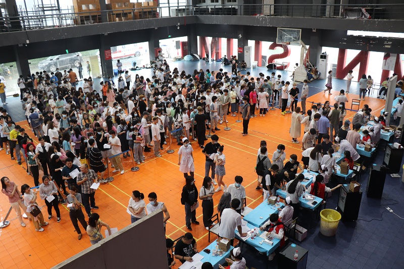 为确保疫苗接种工作安全、有序、规范。接种现场共划分健康询问区、接种区、留观区、抢救区四个区域,疫苗接种期间,各部门协同,分院系、分时段、分步骤,合理把控人员密度,配合医务人员做好现场登记引导,参加疫苗接种的师生员工按照通知时段有序排队,按规定完成每一步操作,临时接种点共接种新冠疫苗4360人。有序完成师生员工的疫苗接种工作,全力筑牢免疫屏障。