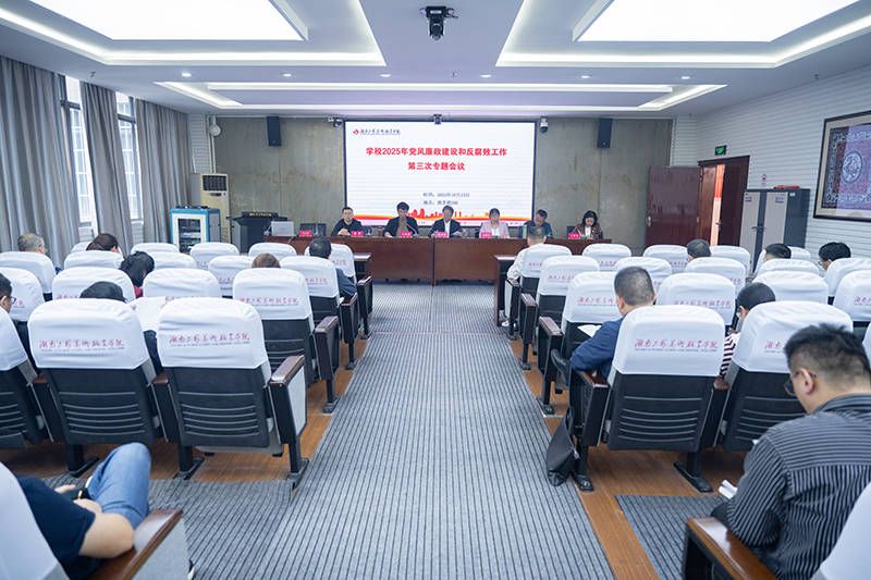 10月15日下午,学校在致美楼206会议室召开2025年党风廉政建设和反腐败工作第三次专题会议。党委书记陈鸿俊出席会议并讲话,校长夏能权主持会议,党委副书记汪泳波,副校长彭泽立、张华、王慧君,全体中层干部和党支部书记参加会议。