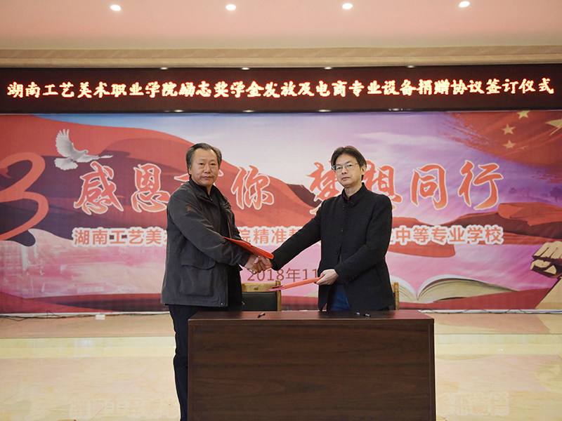 22日上午,湖南工艺美术职业学院励志奖学金发放及电商专业设备捐赠协议签订仪式在通道县职业中等专业学校(以下简称“通道职中”)举行。
