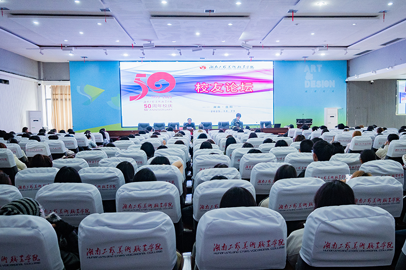 10月25日,在湖南工艺美术职业学院50周年校庆之际,学校在致美楼五楼学术报告厅举行“设计•创业•职场”主题校友论坛。本次论坛作为50周年校庆系列活动之一,邀请了黄建成、杨卫、何阳华、李垣锟四位在各领域取得卓越成就的杰出校友,共话艺术教育,共绘发展蓝图。副校长张华主持论坛。