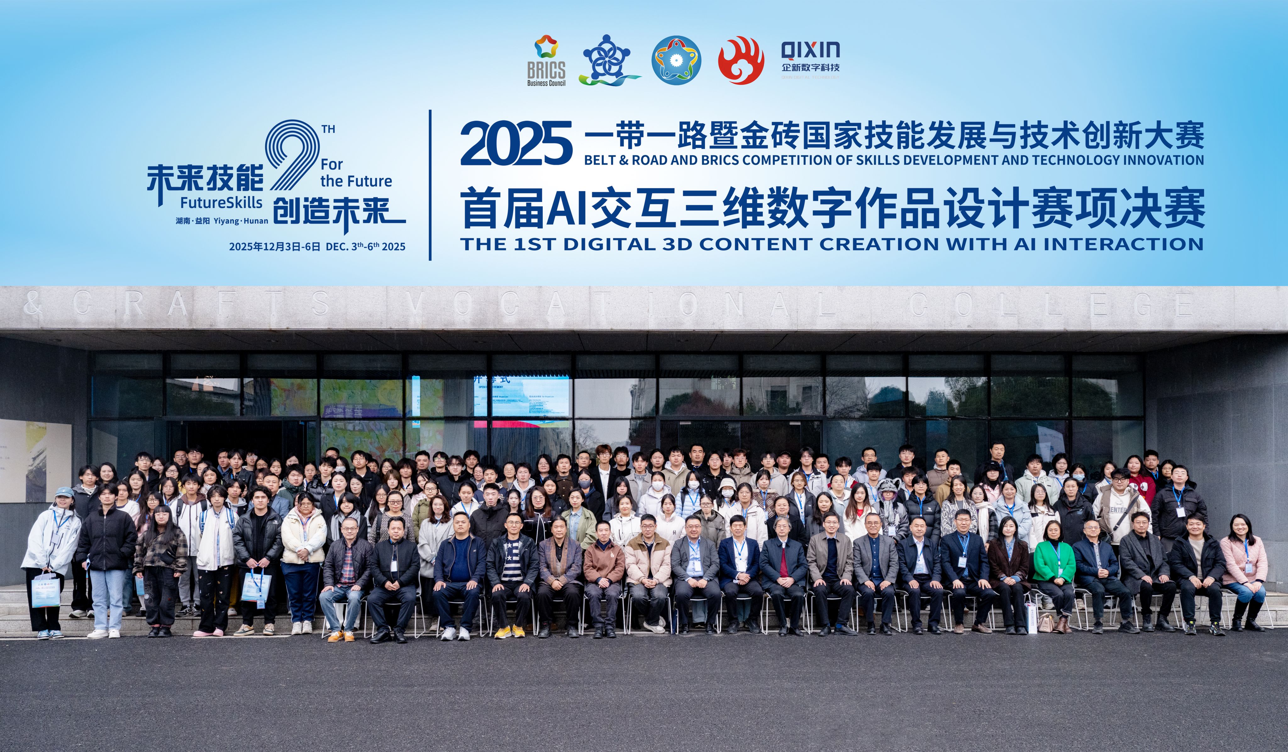 12月4日下午,2025一带一路暨金砖国家技能发展与技术创新大赛首届AI交互三维数字作品设计赛项决赛在湖南工艺美术职业学院开幕,来自全国各地的38所院校的200余名参赛选手齐聚益阳,同台竞技展现数智时代技能风采。