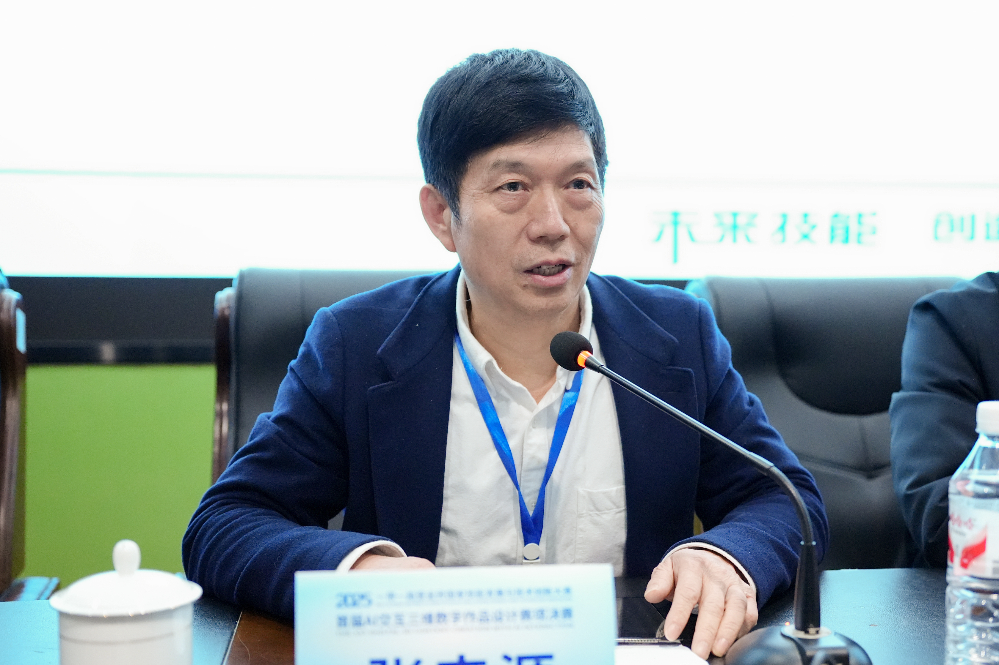 AI交互三维数字作品设计赛项专家组长、教育部职业院校艺术类专业教指委秘书长张来源在致辞中阐释了赛项设计的专业考量。他指出,本赛项综合考核AI生成、三维设计与交互逻辑,紧密对接数字内容产业从“制作”迈向“智作”的新趋势,旨在引领职业院校相关专业教学的改革方向。