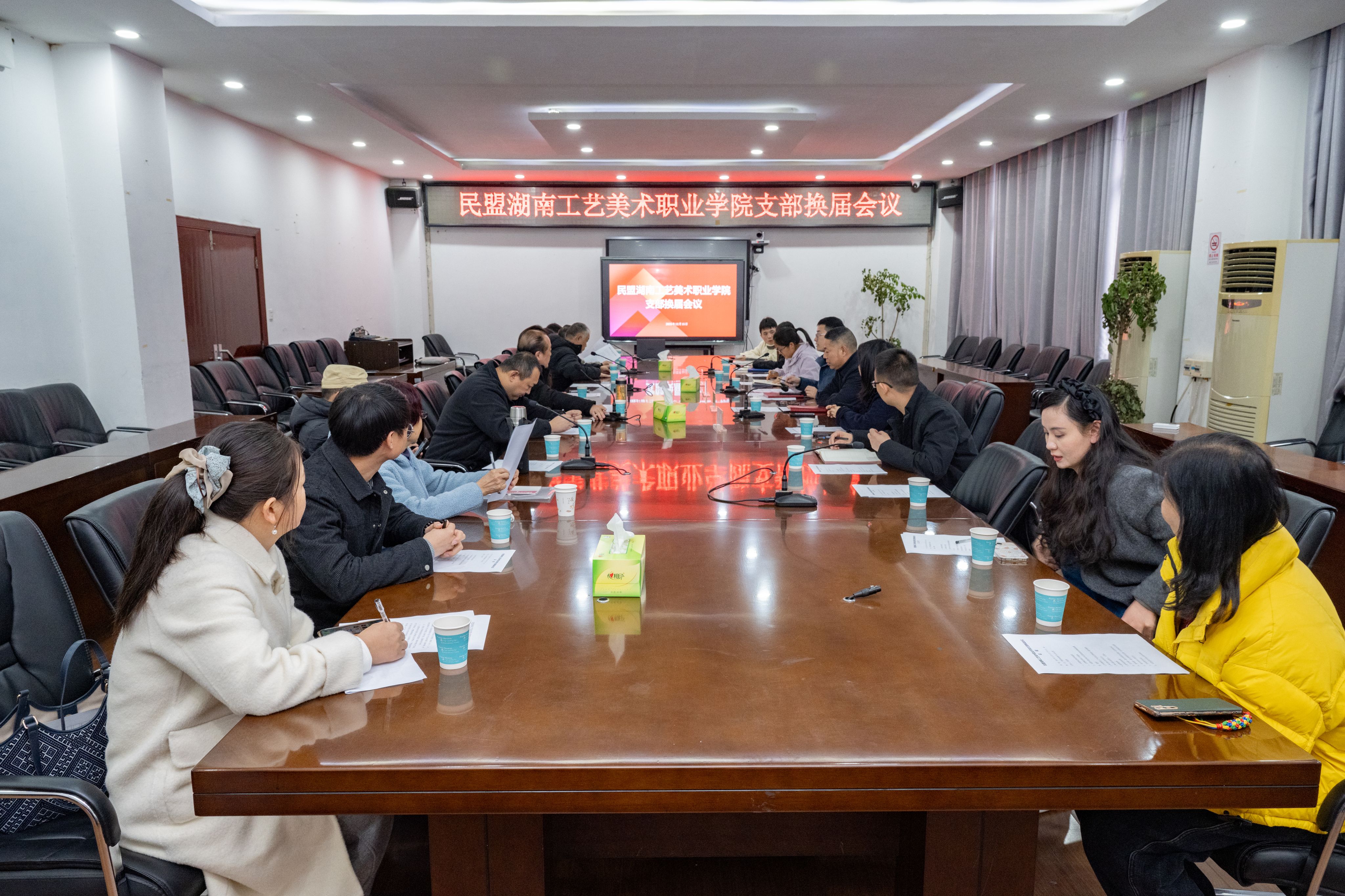 12月15日下午,民盟湖南工艺美术职业学院支部换届会议在致美楼201会议室举行。民盟益阳市委会专职副主委罗小军、秘书长夏琼波,学校党委委员、宣传统战部部长黄璜出席,民盟湖南工艺美术职业学院支部主委张清主持会议。