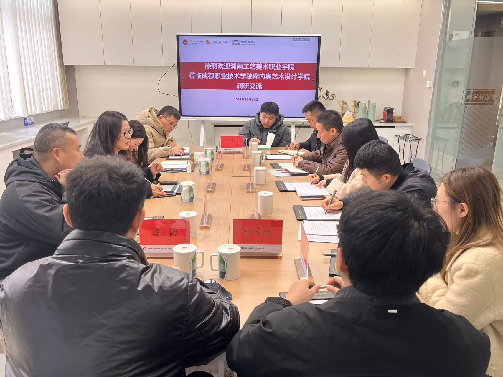 刘英武一行首先走访了意大利库内奥美术学院驻成都校方代表机构,系统了解其在华合作的运作机制、资源对接模式及校企协同体系。随后实地考察成都职业技术学院库内奥艺术设计学院,深入教学实训场地观摩课程实训开展情况,并走进成都非物质文化遗产学院,重点学习其在非遗传承与现代设计教育融合方面的特色实践成果。