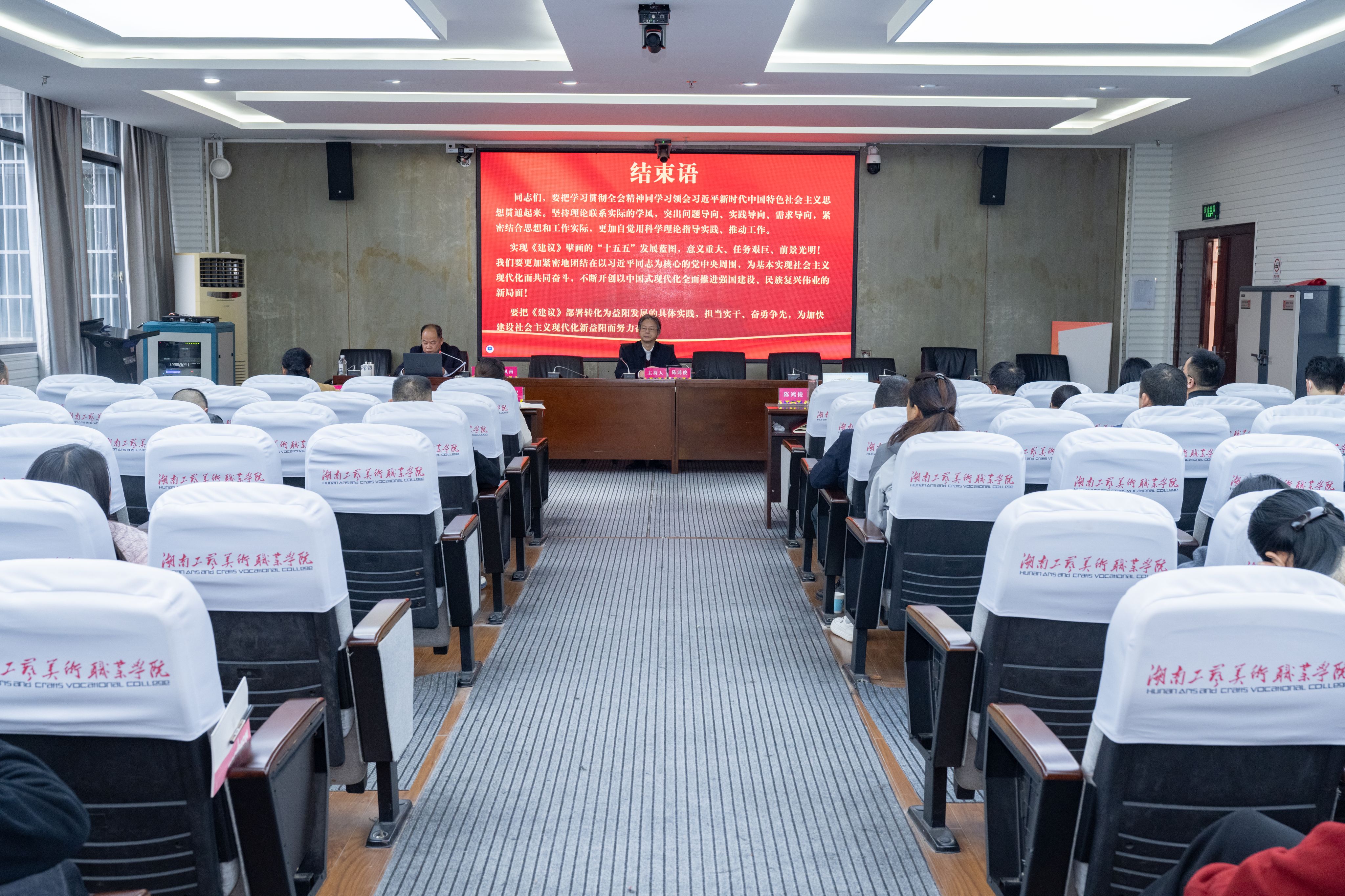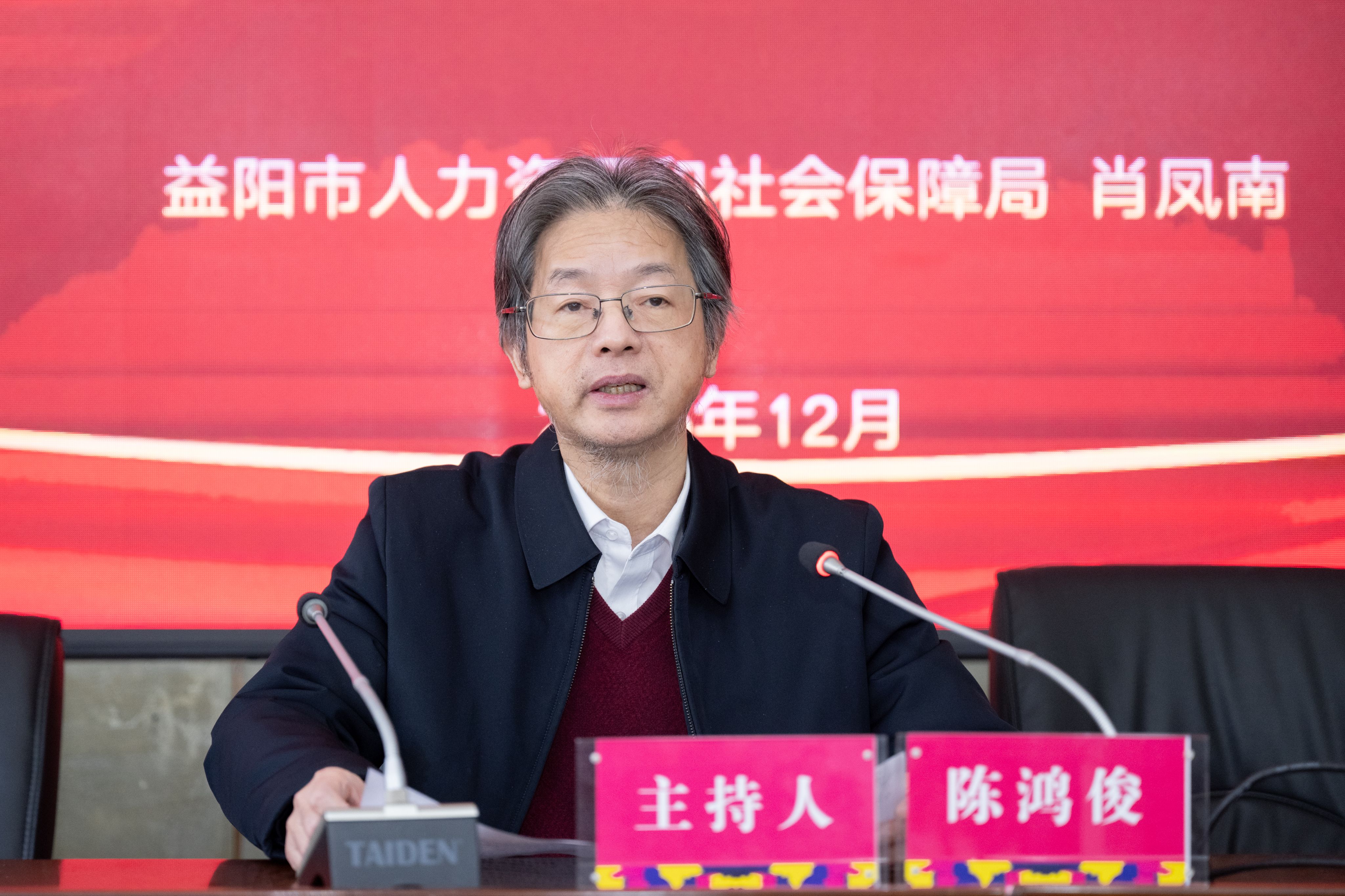 12月19日下午,学校在致美楼206会议室举行2025年党委理论学习中心组第十二次(扩大)集体学习暨学习贯彻党的二十届四中全会精神专题宣讲报告会。学校党委书记陈鸿俊主持学习并作总结讲话。益阳市委宣讲团成员、市人力资源和社会保障局党组书记、局长肖凤南应邀作专题辅导报告。