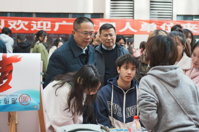 “从上午的专场宣讲会到下午的供需见面会,我们今天收到将近100份简历,湖南工艺美院学生的综合素养是不错的,这也是我们每年都来校多轮招聘的主要原因。”湖南金煌建筑装饰设计工程有限公司人力资源部经理肖霄介绍。近年来,学校牵头组建了全国数字创意行业产教融合共同体、湖南工艺美术职业教育集团,新建了216家校企合作·就业实习基地,形成了校企深度合作,产教深度融合的生动局面。