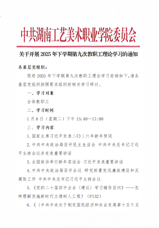 关于开展2025年下学期第九次教职工理论学习的通知
