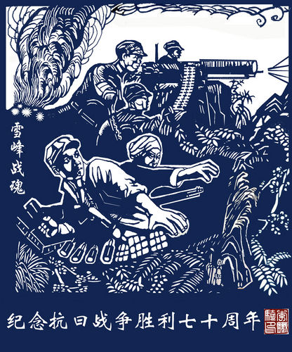 踏虎凿花剪纸《雪峰战魂》