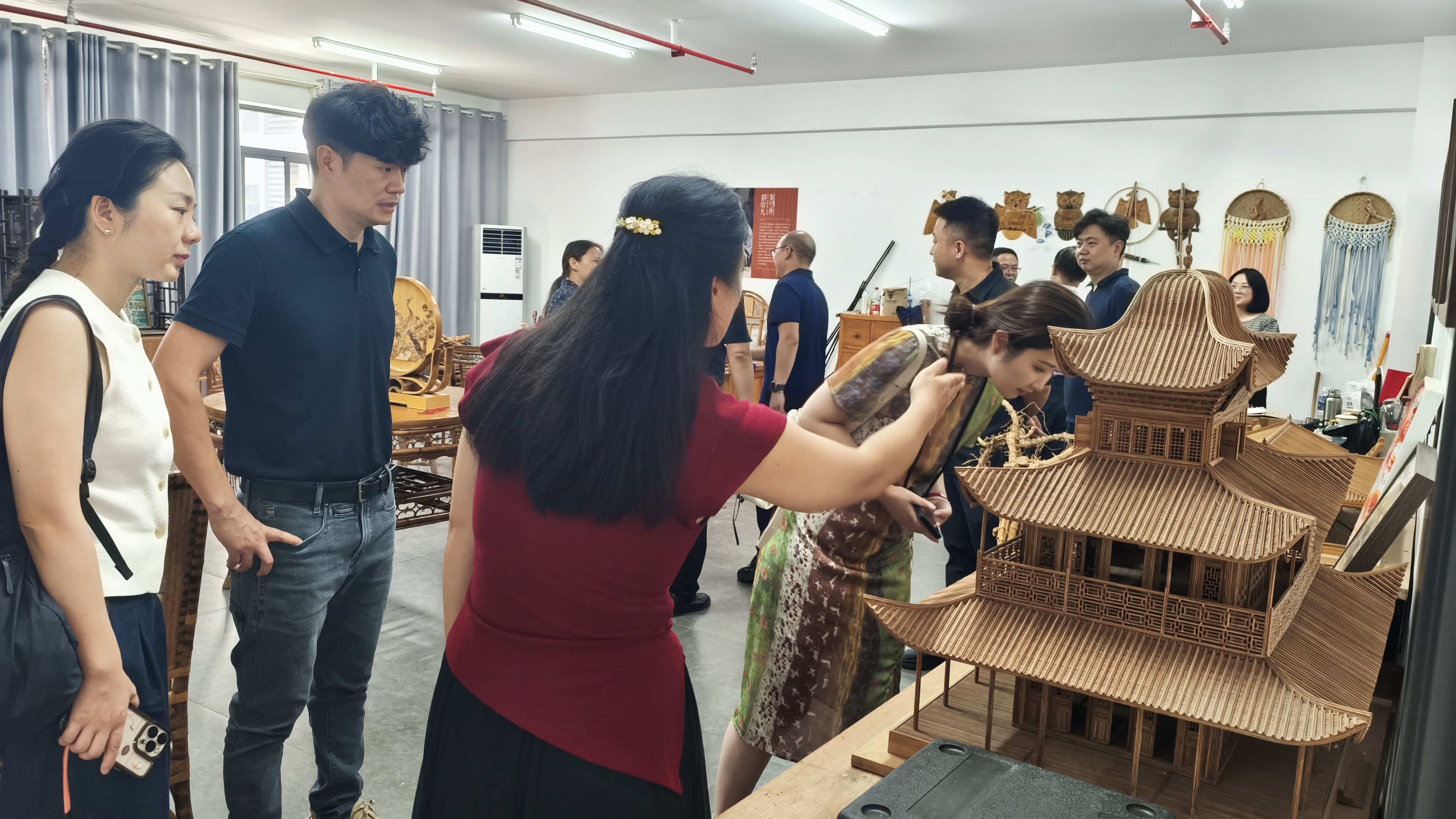 2025年9月16日上午,武汉职业技术大学艺术设计学院院长谢丽、副院长刘波、环艺教研室主任梁俊、数字媒体教研室主任周文、艺术设计学院数字媒体教研室骨干教师骆雨晴一行5人到手工艺术学院参观交流,手工艺术学院副院长胡隆文、副院长王飞等热情接待。