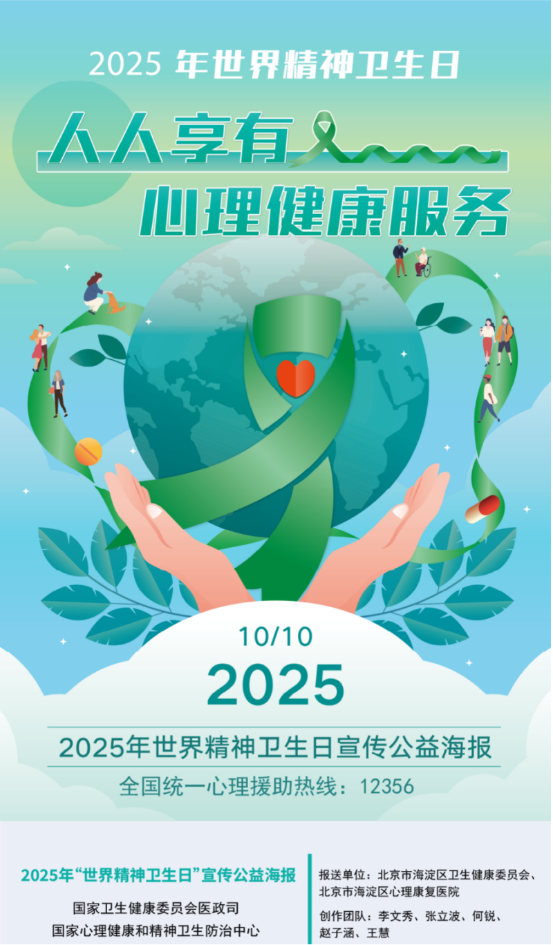 2025年10月10日是第34个世界精神卫生日,今年活动主题为“人人享有心理健康服务”。旨在进一步提高全社会对心理健康和精神卫生工作的重视程度,促进对常见心理问题和精神疾病的正确理性认知,减轻社会歧视和防止“污名化”。同时,进一步提高心理健康和精神卫生服务可及性,增强群众获得感。
