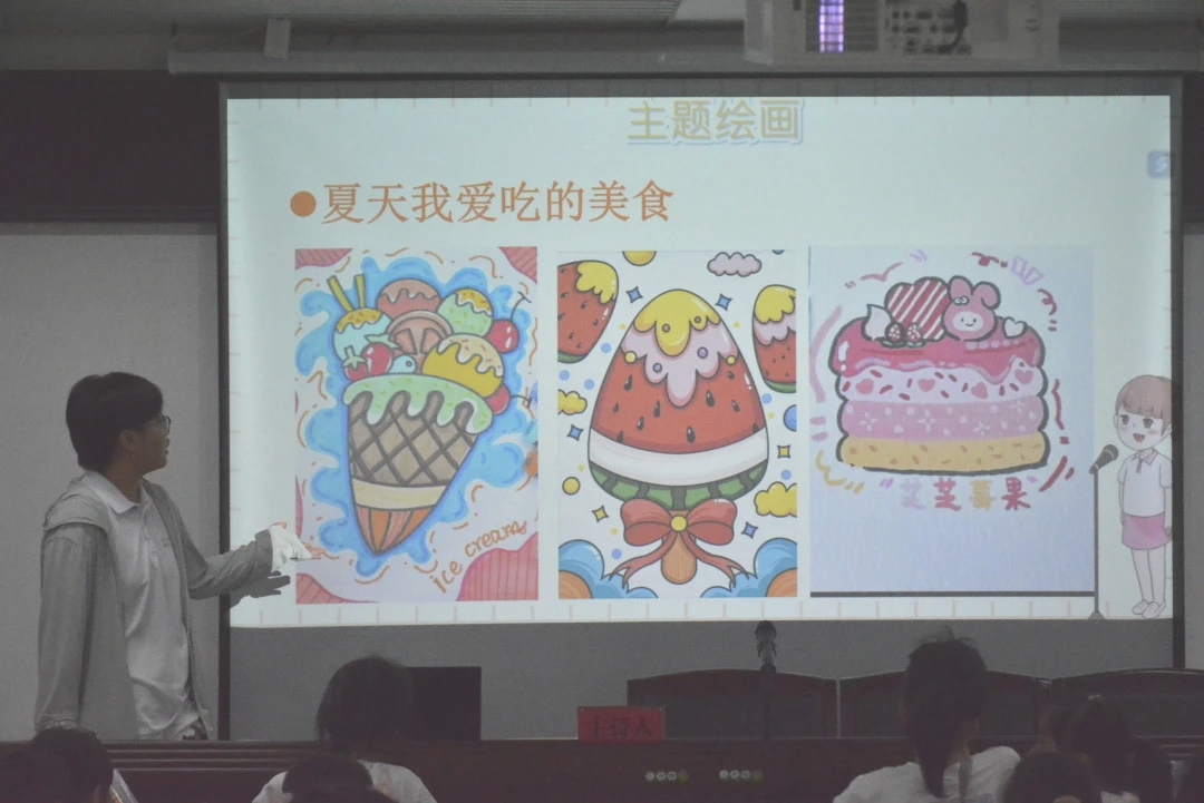6月21日,夏意正浓,湖南工艺美术职业学院的师生志愿者团队再次赴桃江县修山镇三官桥小学,给二年级同学带来了一期以“夏天的美食”为主题的少儿绘画培训。