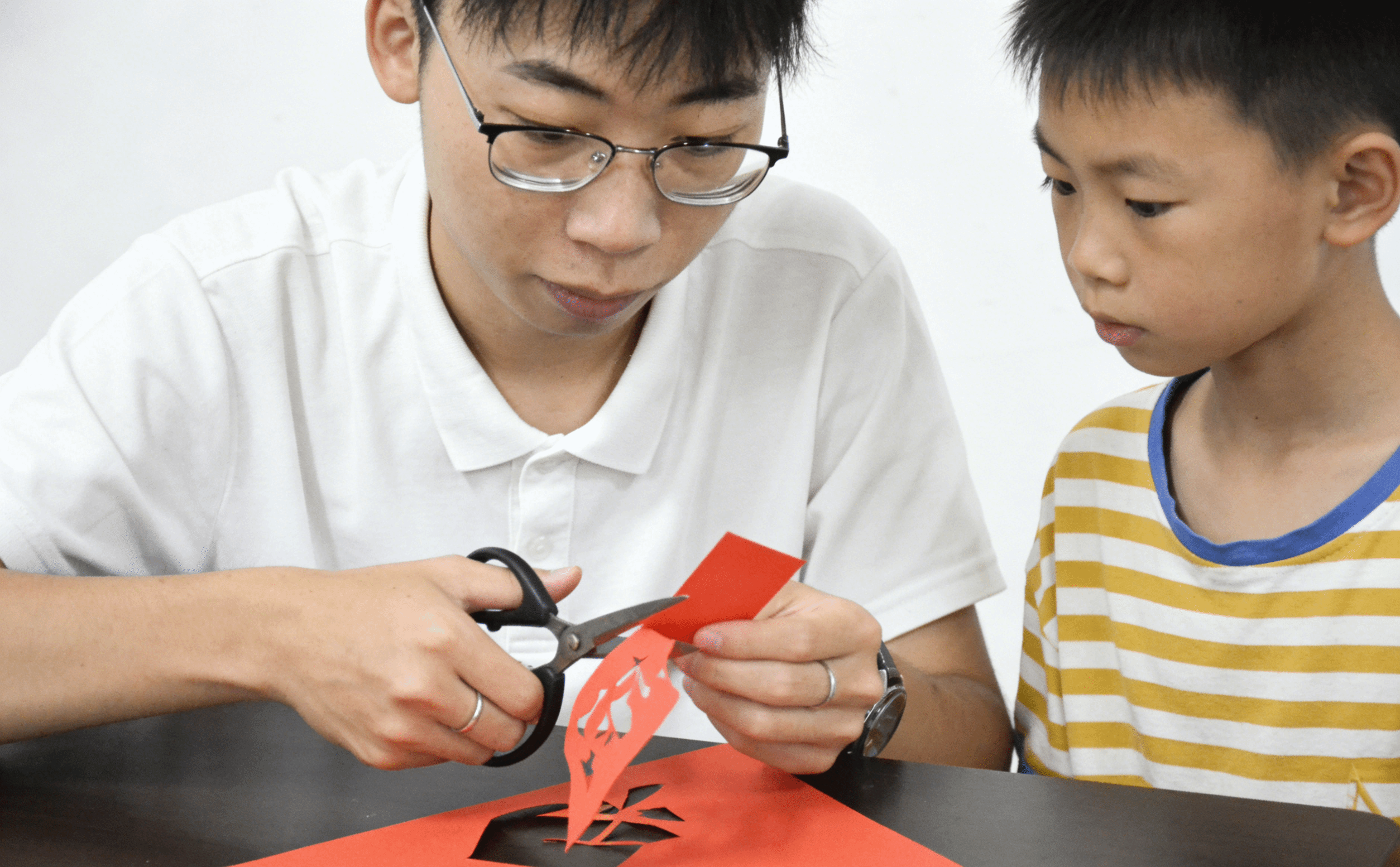 在实践环节中,现场气氛热烈而专注。志愿者们分组走到孩子们中间,手把手地指导他们如何正确使用安全剪刀,从最简单的对称图形剪起。折纸、画图、开剪……每一步都充满了探索的乐趣。虽然手法略显生涩,但每一个孩子都全神贯注,小心翼翼地操控着手中的剪刀。当纸张展开,一个个虽然稚拙却充满想象力的星星、爱心、小蝴蝶呈现在眼前时,孩子们的脸上绽放出惊喜而自豪的笑容。