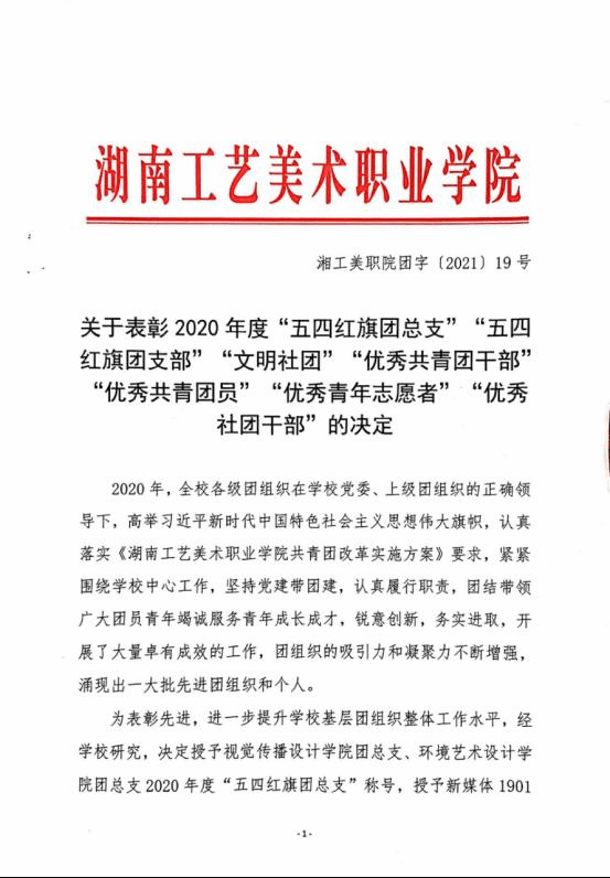 关于表彰2020年度“五四红旗团总支”“五四红旗团支部”“文明社团”“优秀共青团干部”“优秀共青团员”“优秀青年志愿者”“优秀社团干部”的决定