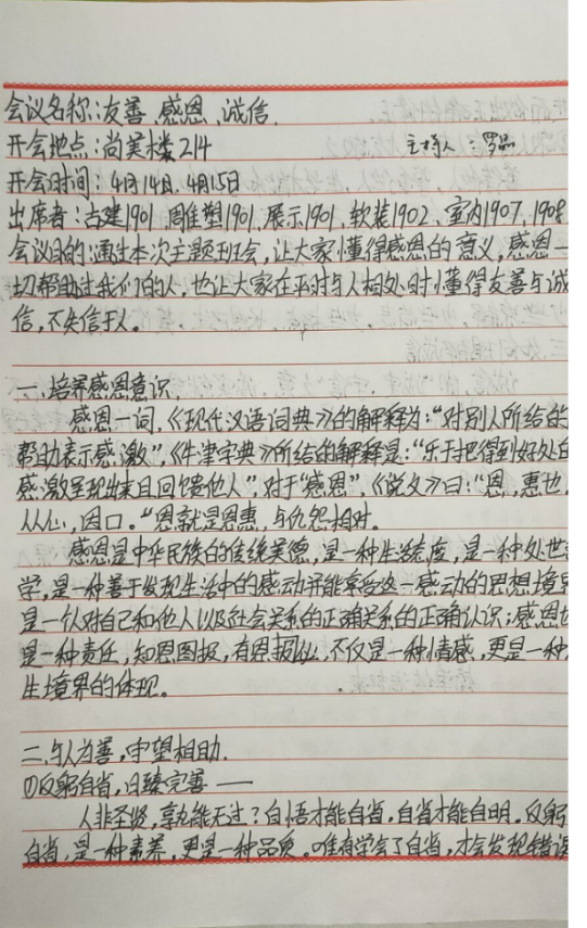 召开关于感恩、励志、诚信等方面的主题班会