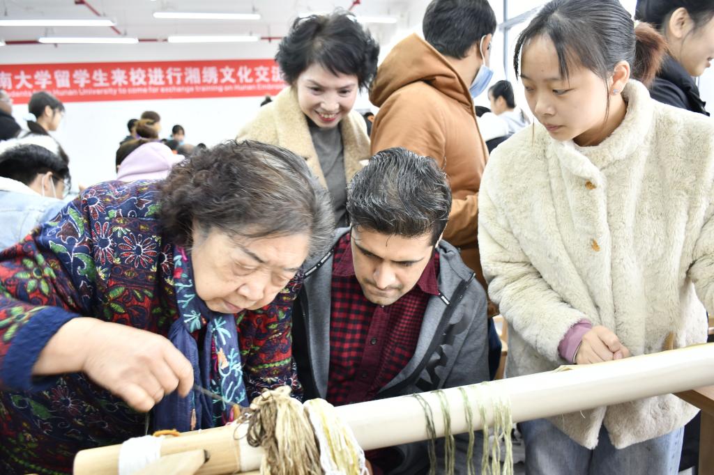 11月23日,湘绣艺术学院刺绣工作室迎来了一批不同寻常的刺绣爱好者,他们是来自湖南大学国际交流处的留学生们。阿福汗、也门、马达加斯加......虽然来自不同的国家,但他们对于湘绣这一古老的传统技艺都充满了喜爱。
