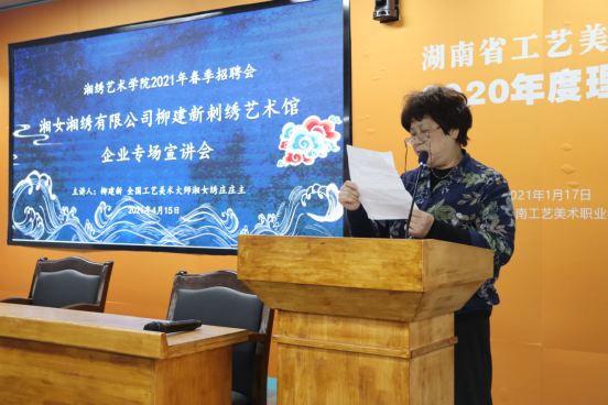 长沙雅绣集湘绣有限公司董事长蒲宇凤进行企业宣讲