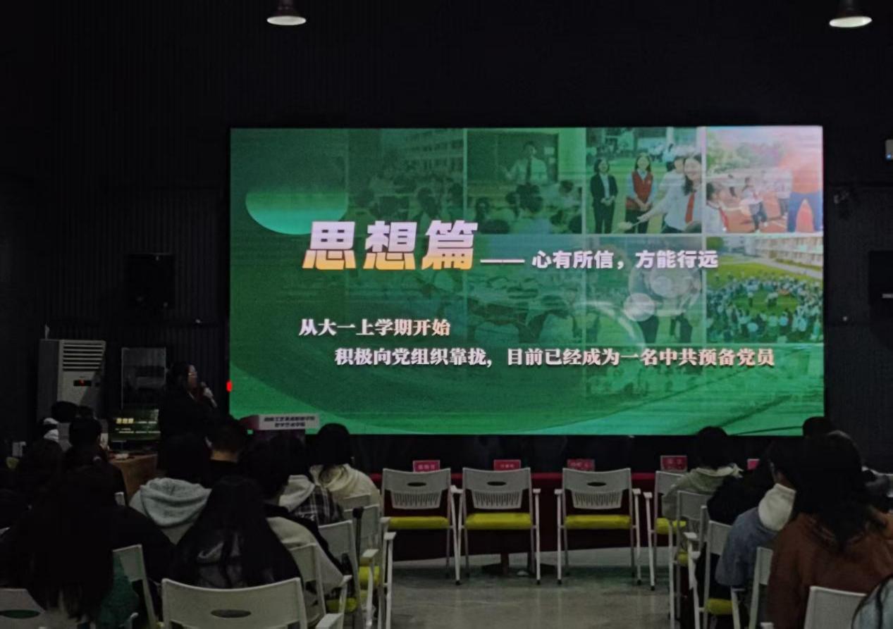随后,彭怡媛、郭晓梅、龙中华三位学姐依次作经验分享。彭怡媛围绕思想建设、学业精进、竞赛突破、实践践行与综合素质五大维度,系统梳理成长路径;龙中华从学业与工作平衡、职务履职、活动推进及实践成长等方面,分享实用方法与技巧;郭晓梅则结合心态与命运的关系,阐述了积极心态的培养途径,鼓励同学们自信面对挑战。