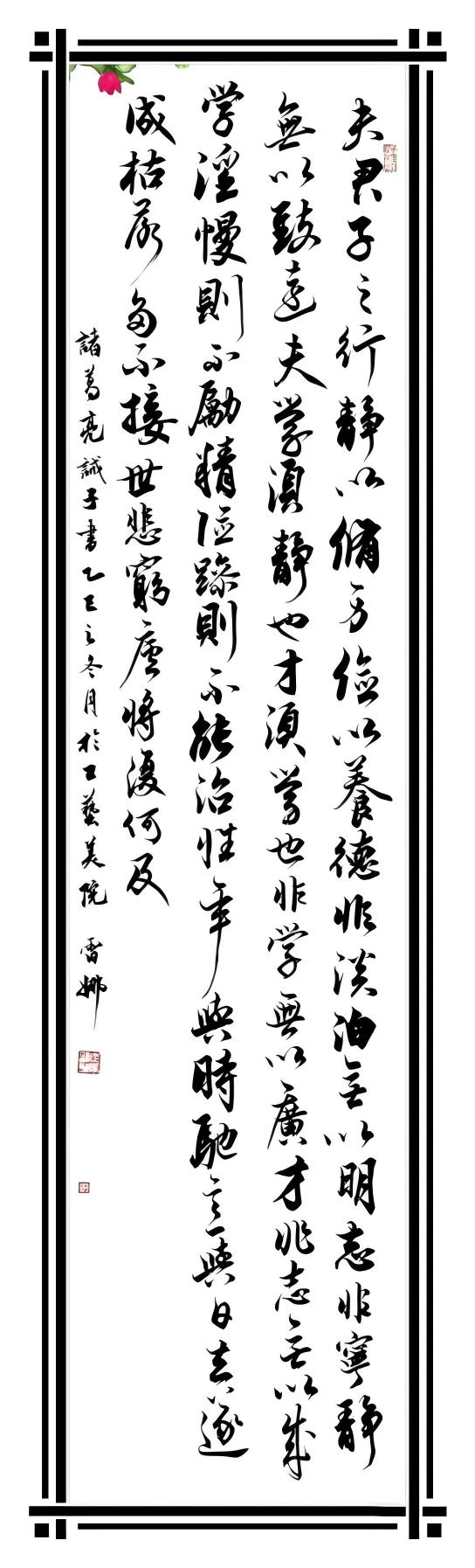 参展作品题材丰富、形式多样,涵盖书法、国画、水彩及手工艺等类别。同学们或以松、竹、梅等传统意象寄托清廉之志,或以绿水青山画卷抒发生态情怀,亦借助人物故事传递廉洁风尚,生动彰显了“以廉为美、守护绿色”的创作理念,为校园文化注入清新雅正的艺术气息。