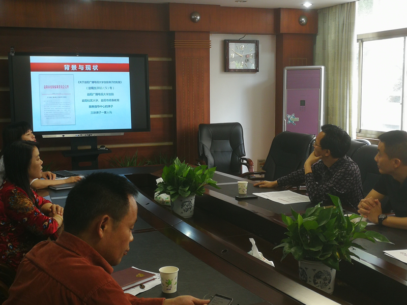 5月9日上午9时,培训中心主任高建民、副主任凤建煌一行来到益阳广播电视大学探讨社区学院相关事项。