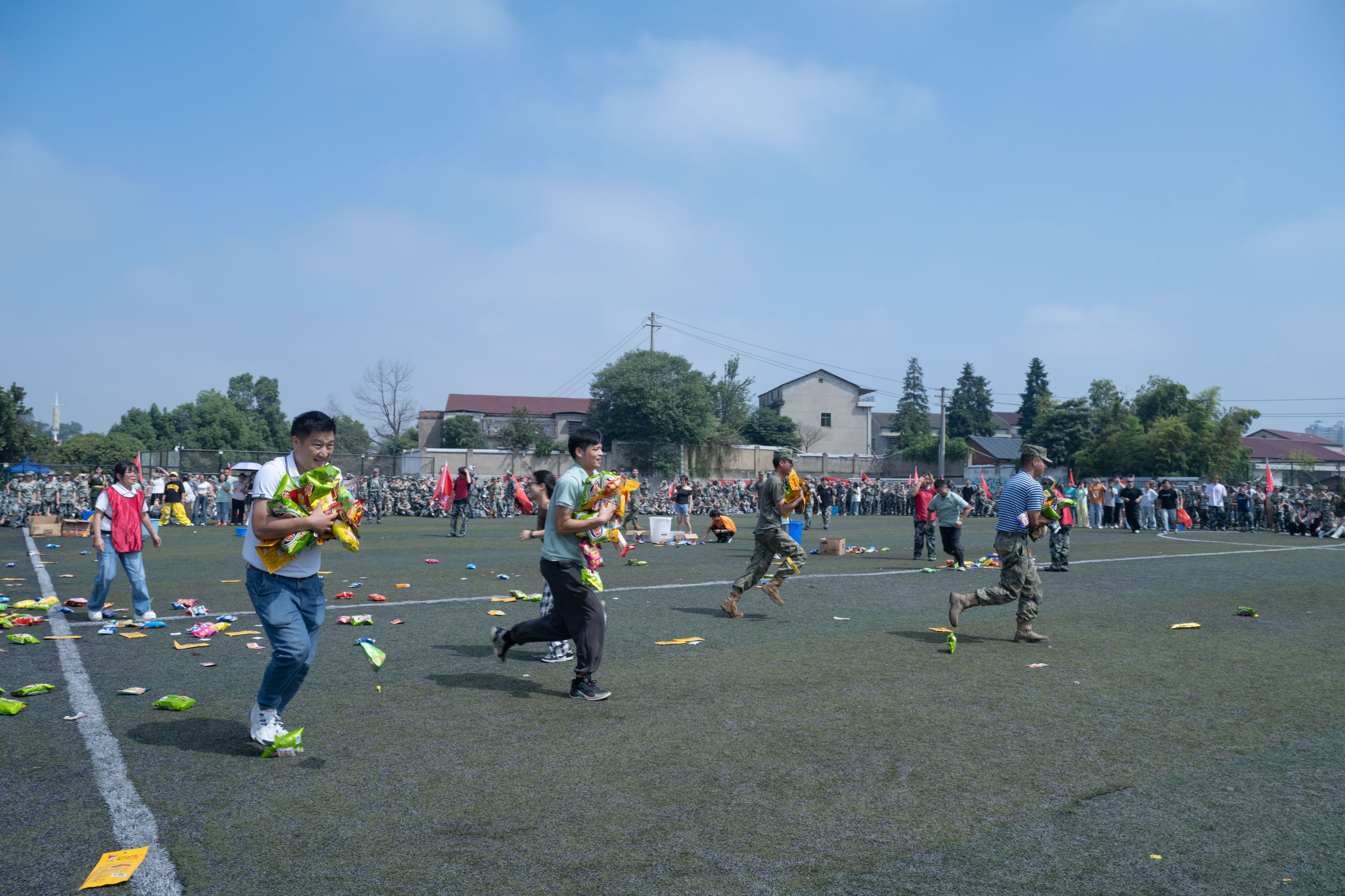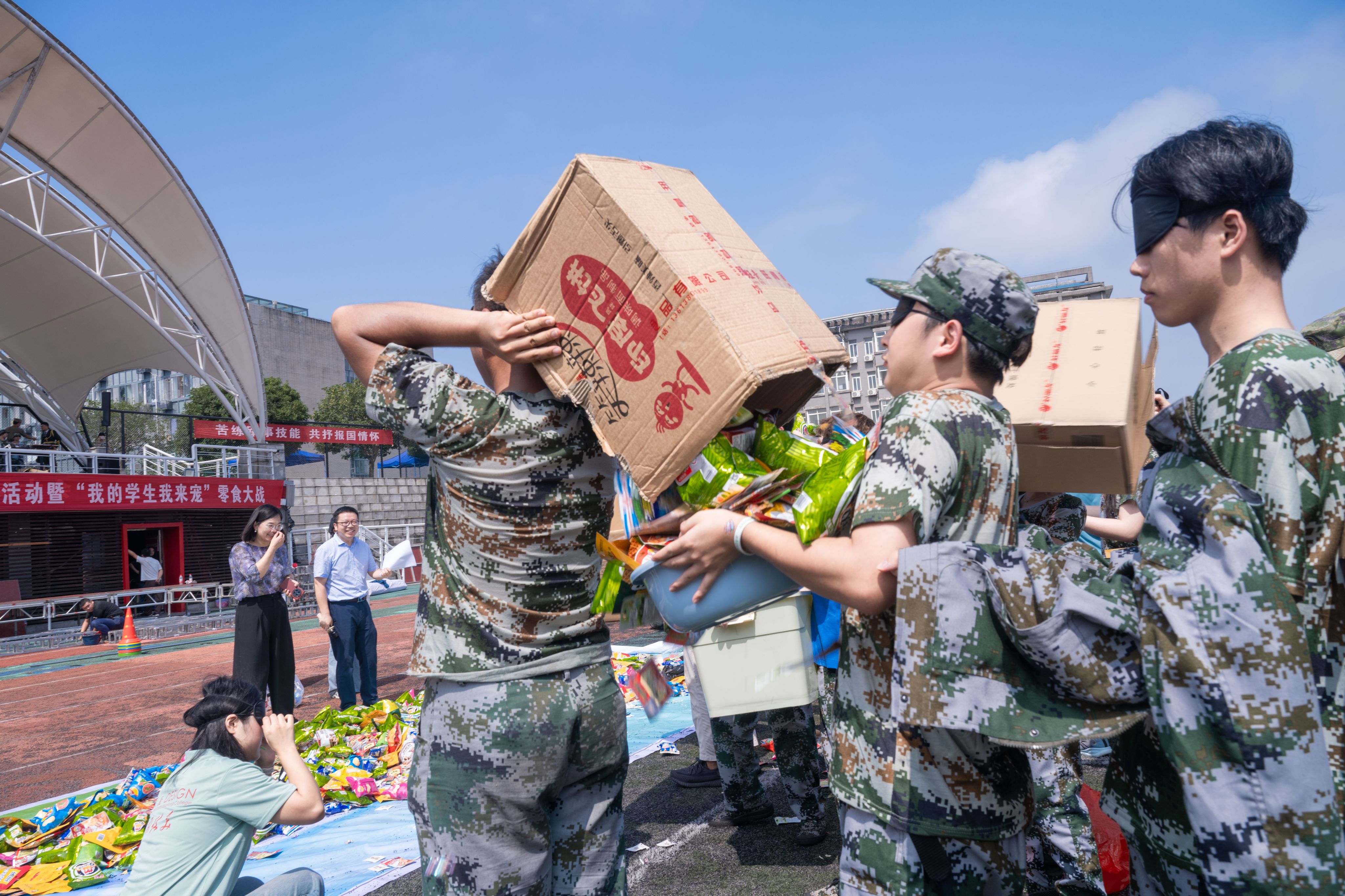 辅导员和教官“齐心协力搬零食”