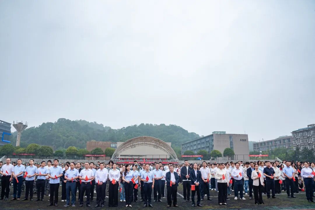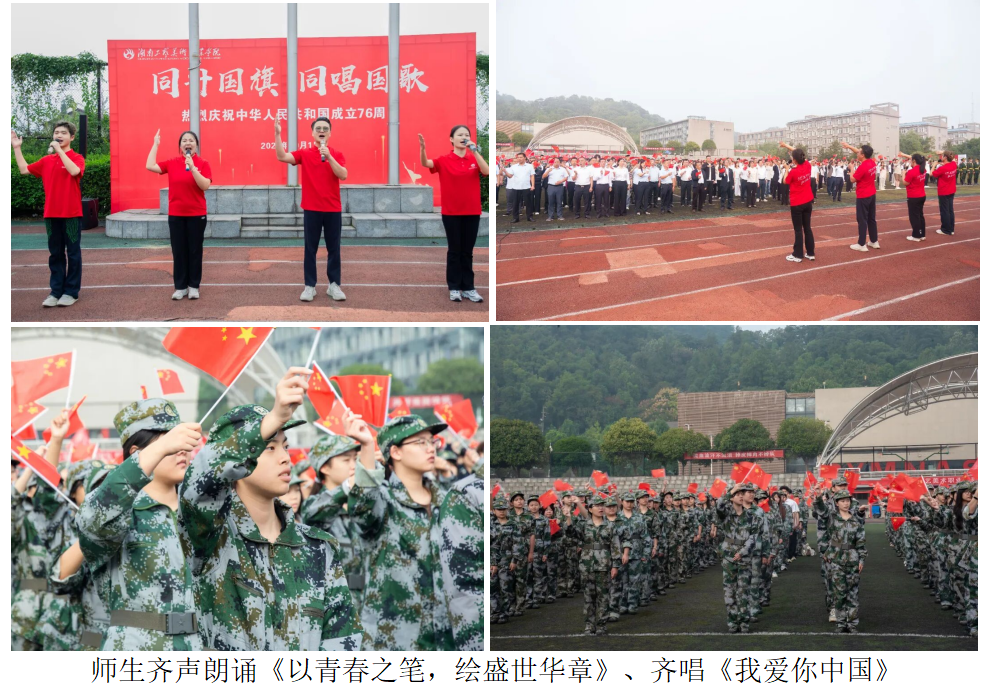 仪式在深情的文艺展演中达到高潮。全体师生共同欣赏了配乐朗诵《以青春之笔,绘盛世华章》,并齐声高唱《我爱你中国》,用嘹亮的歌声表达对伟大祖国的深切热爱和美好祝福。