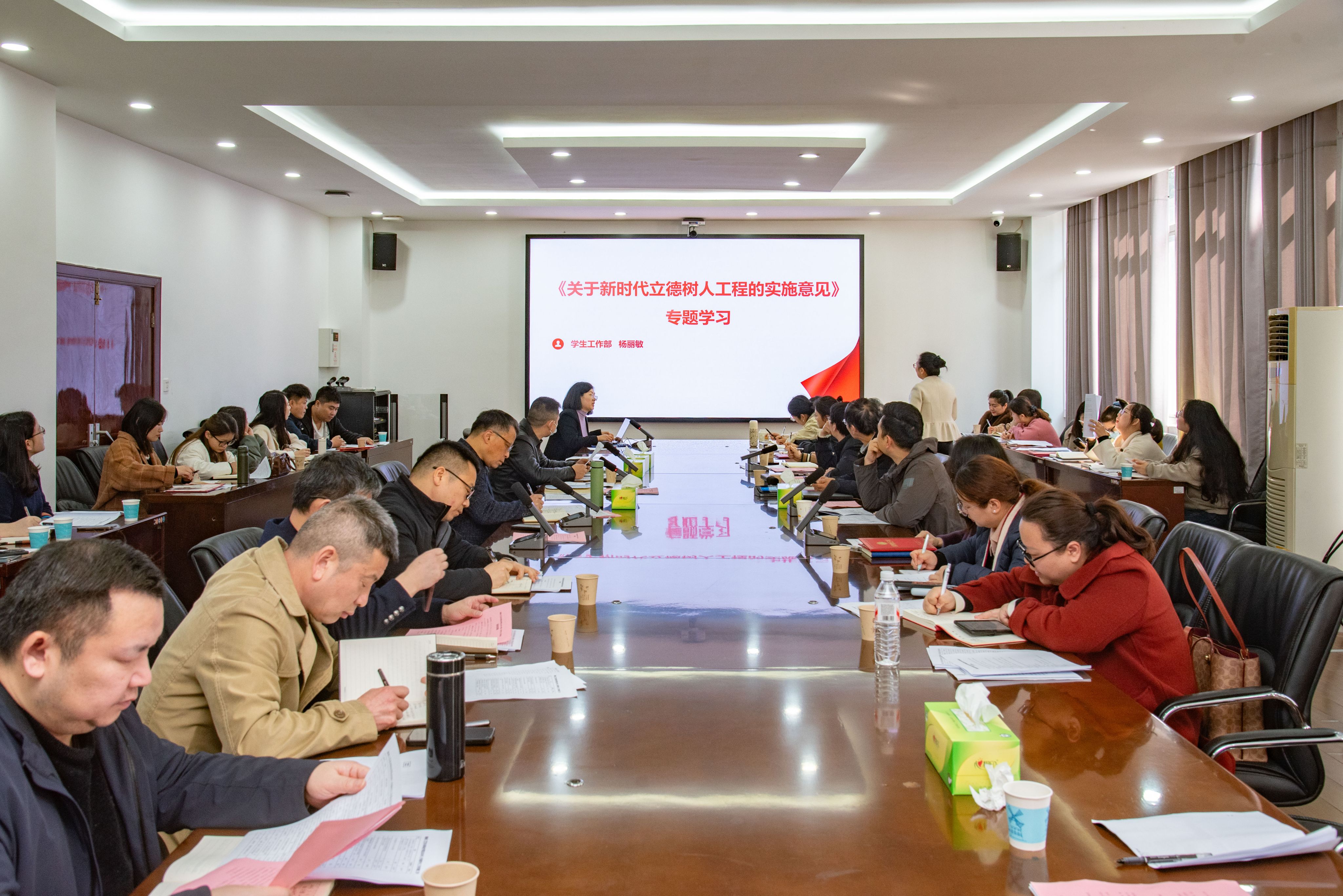 杨丽敏围绕新时代立德树人工程作专题报告,结合2026年上学期学生工作实际情况和工作任务,就贯彻落实工作提出具体要求。