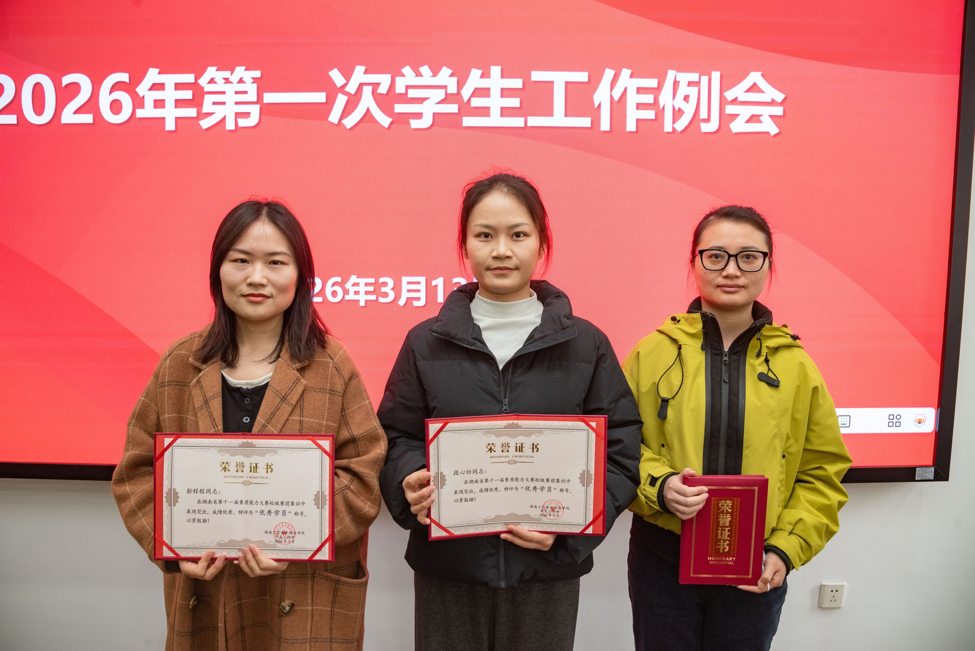 会议开始,彭泽立为学校第十一届辅导员素质能力大赛赛前专题集训营获奖集体和个人颁发荣誉证书。本次集训营旨在以赛促学,以赛促建,进一步提升了辅导员队伍的理论水平与实战能力。