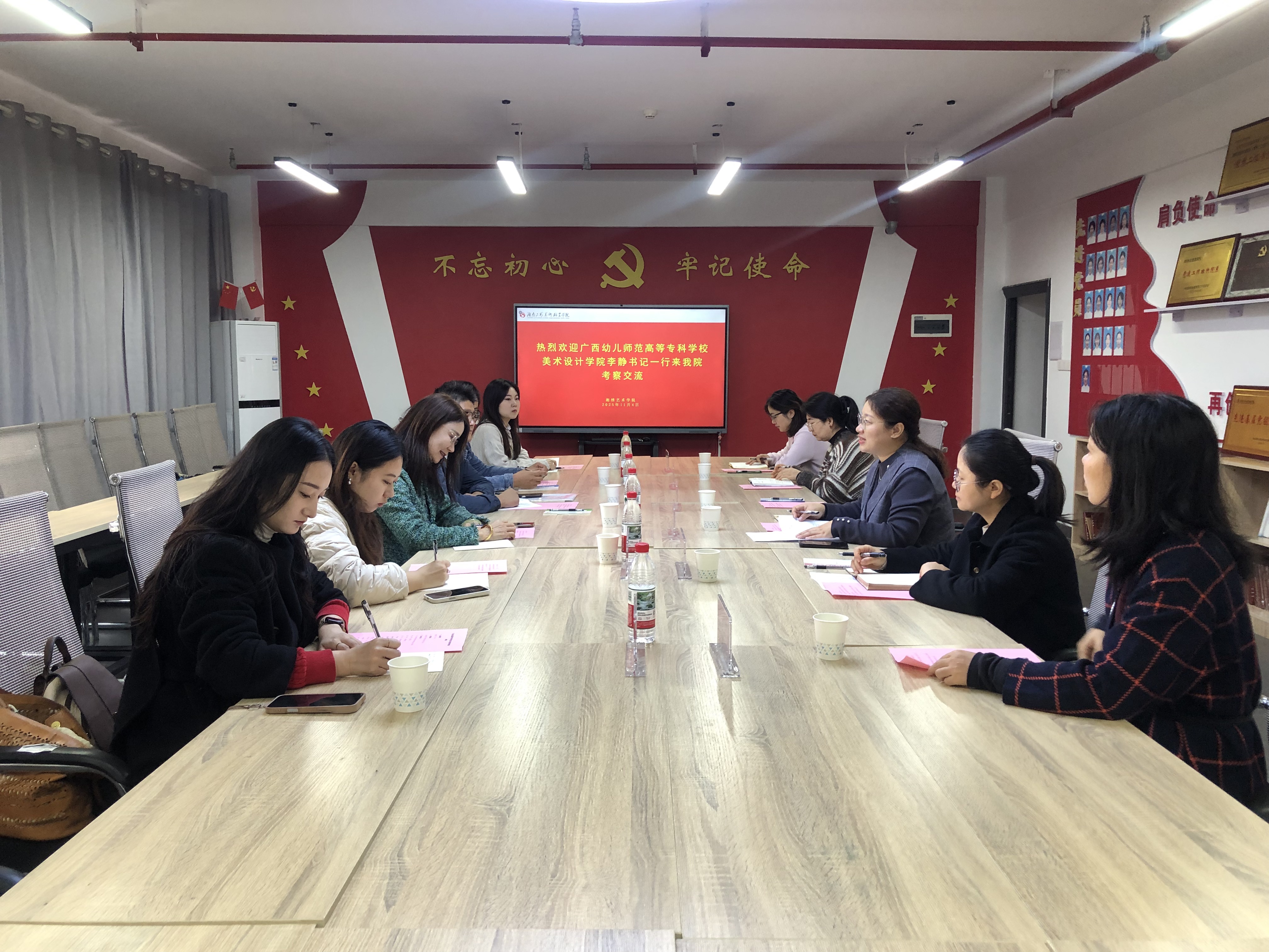 11月4日,广西幼儿师范高等专科学校美术设计学院党委书记李静一行6人来到湘绣艺术学院参观交流,湘绣艺术学院党总支副书记蔡胜男、副院长谢文波热情接待并陪同交流。李静一行先后参观了学校非物质文化遗产...【详细信息】