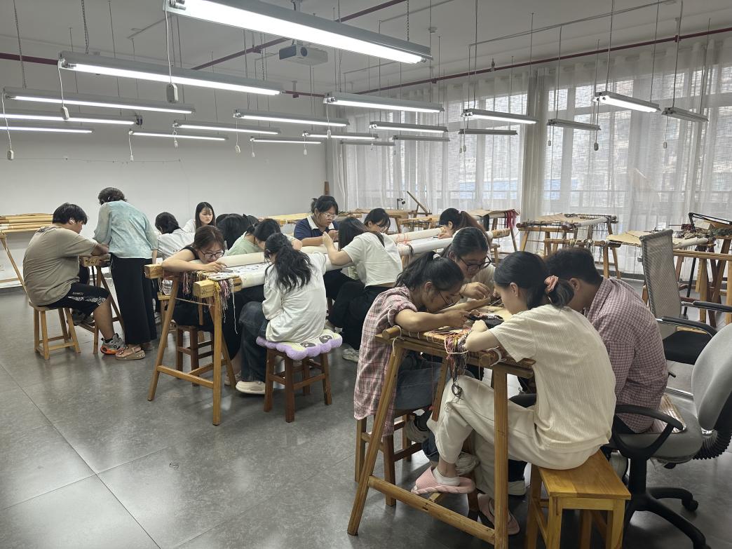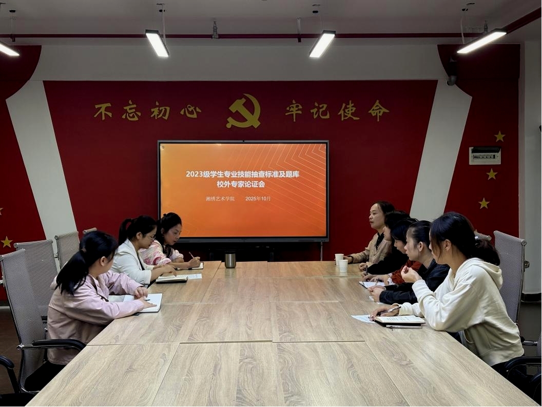 技能抽查是检验人才培养质量的重要抓手。湘绣艺术学院高度重视此次抽查活动,于9月8日组织2023级全体师生召开了技能抽查考试培训动员大会,并从当日起进行了为期一个月的技能集中训练。10月10日,邀请了长沙市伊飞湘绣有限公司设计总监毛珊大师、长沙雅绣集有限公司主理人蒲宇凤对技能抽查标准和题库进行了论证。