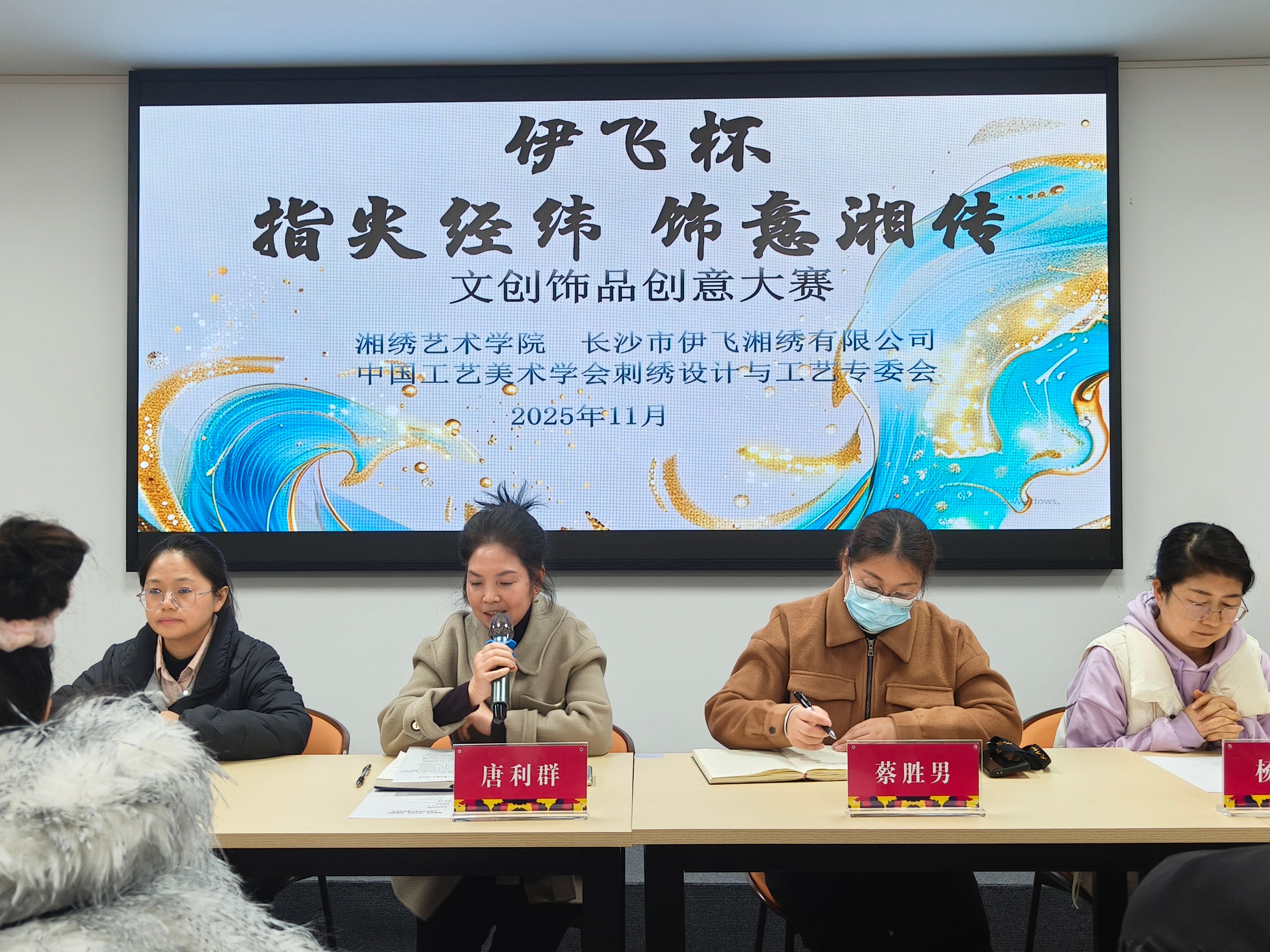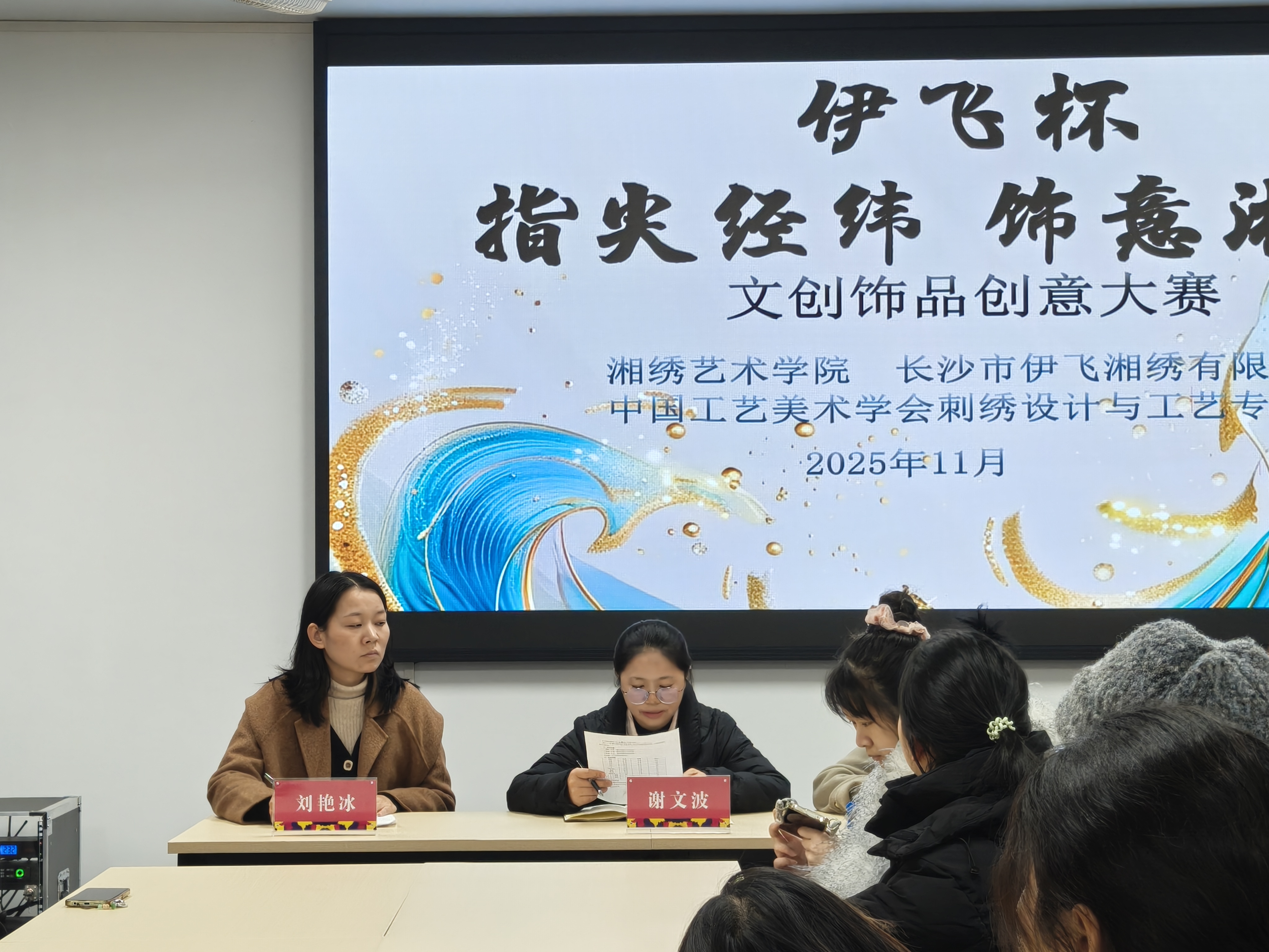 11月20日,湘绣艺术学院与长沙市伊飞湘绣有限公司联合举办的“伊飞杯”指尖经纬·饰意湘传文创饰品创意大赛拉开序幕。本次活动面向全院学生,旨在通过创意设计与手工实践,推动湘绣技艺与现代饰品的有机融合,探索非遗文化的当代价值。