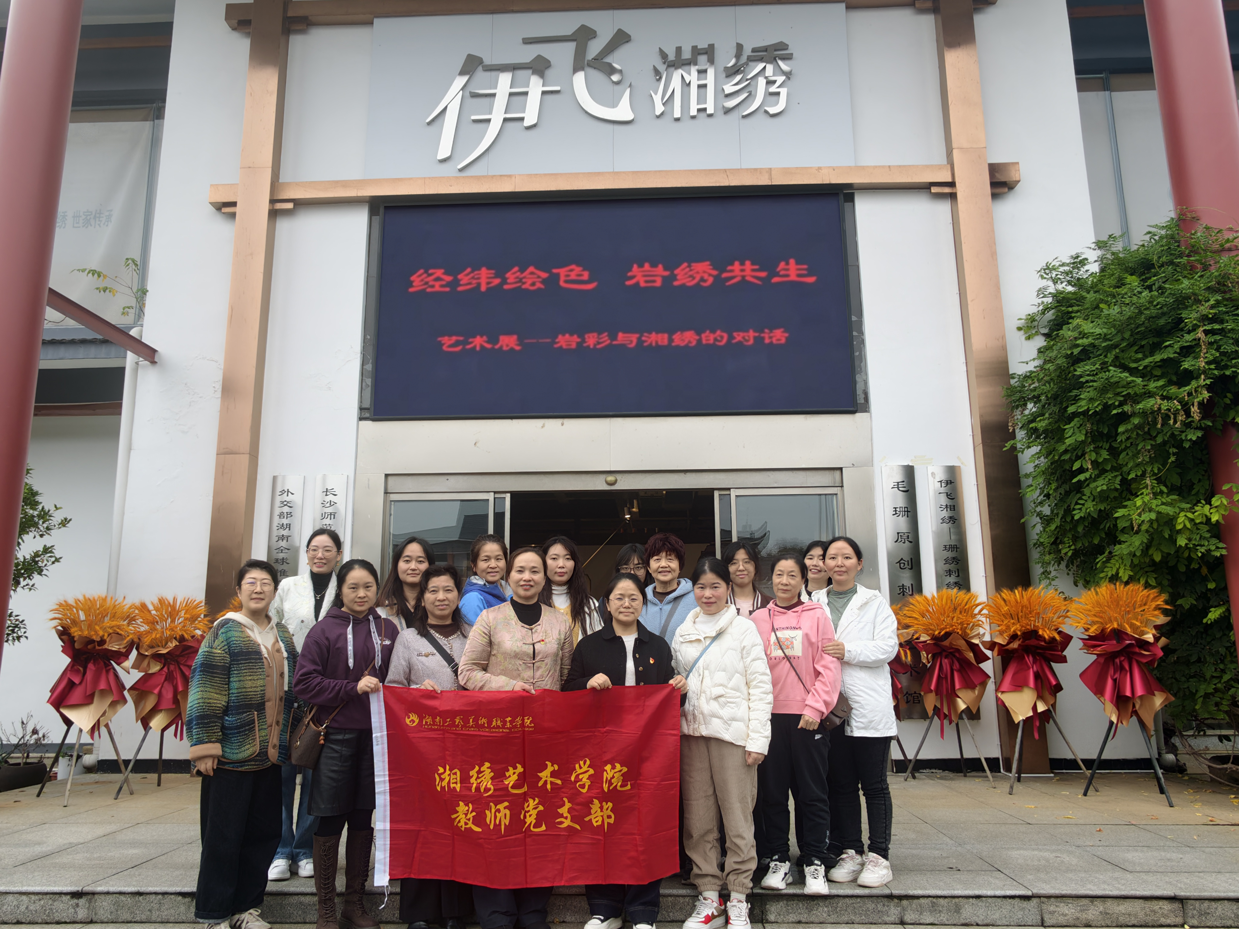 实践环节,支部组织党员赴联建单位长沙市伊飞湘绣有限公司党支部,实地参观了该企业党支部书记毛珊大师的“经纬绘色,岩绣共生”艺术展览,并就展览内容进行了深入的交流讨论。