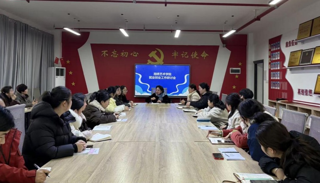 10月28日,湘绣艺术学院召开大学生就业创业工作研讨会,学院党总支书记唐利群、副书记蔡胜男、副院长谢文波及全体教师参加会议。