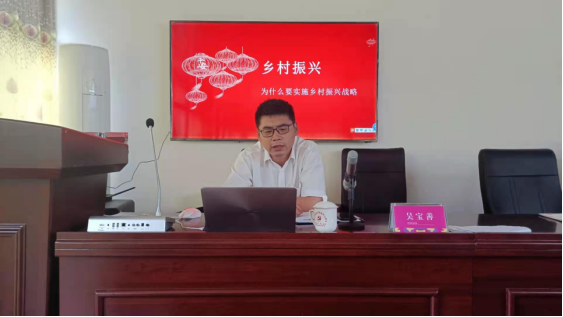 6月3日,安化县尤溪村党支部开展六月份主题党日活动。湖南工艺美术职业学院驻尤溪村乡村振兴工作队队长、第一书记吴宝善以“为什么要实施乡村振兴战略”为主题,为尤溪村全体党员干部、村民代表上来一堂专题党课。