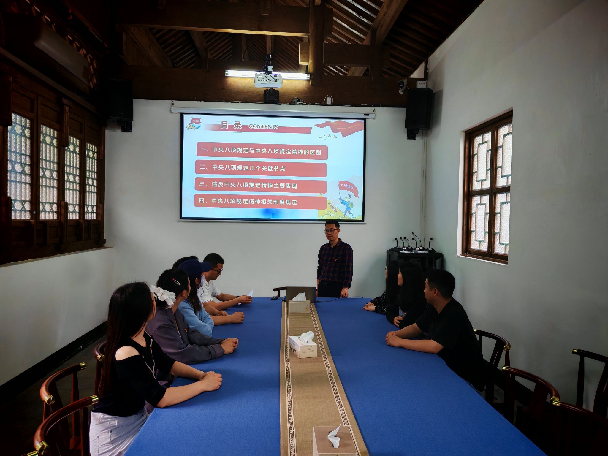 刘光平聚焦深入贯彻中央八项规定精神学习教育,为党员讲授了一堂生动而深刻的专题党课。他深入浅出地分析了中央八项规定与中央八项规定精神的区别,梳理了中央八项规定出台以来的几个关键节点,并结合近年来查处的典型案例深入剖析了违反中央八项规定精神主要表现,详细解读了中央八项规定及其实施细则精神相关制度规定。他强调,全体党员要时刻保持清醒头脑,严格遵守各项纪律规定,将中央八项规定及其实施细则精神内化于心、外化于行。