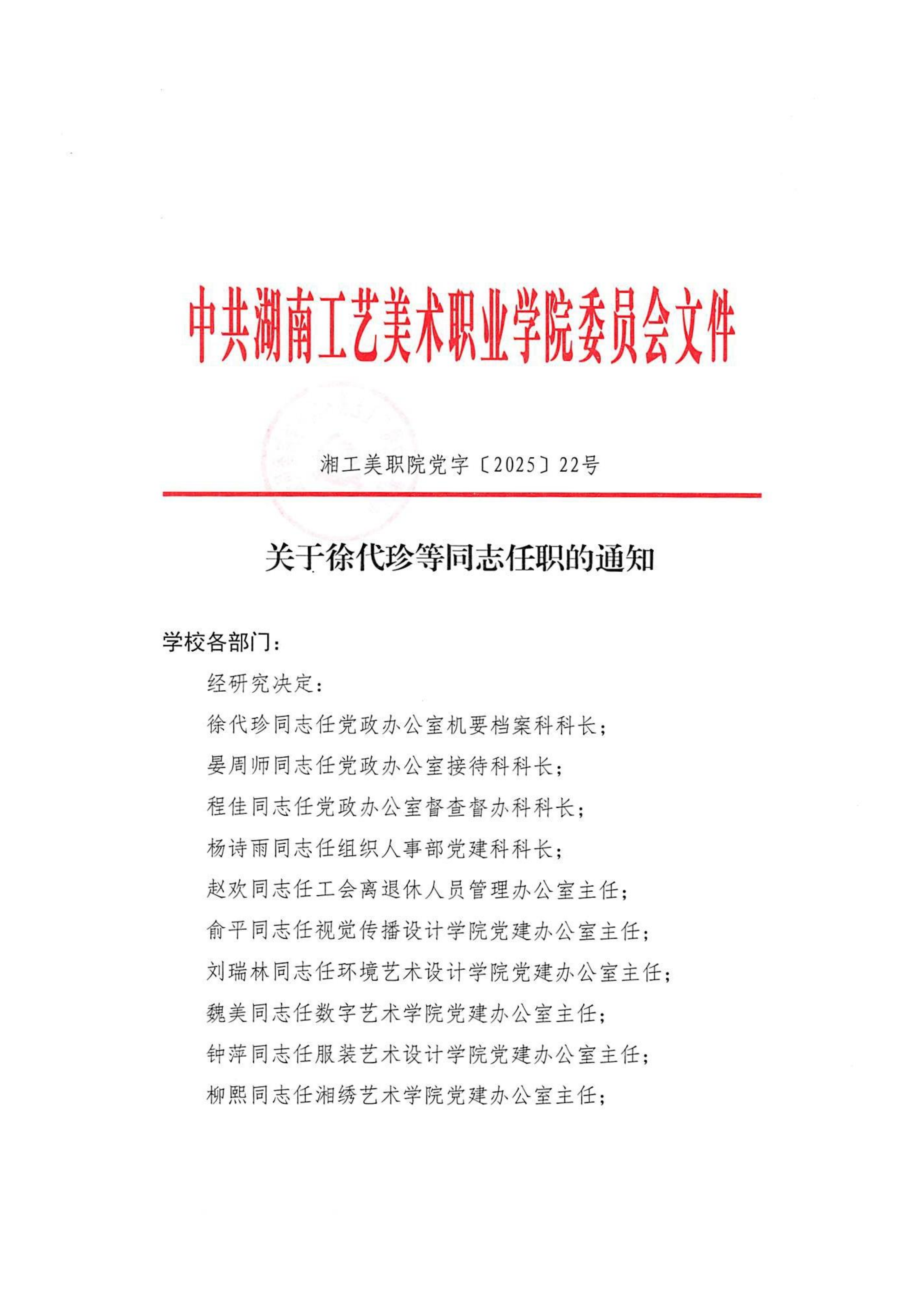 关于徐代珍等同志任职的通知