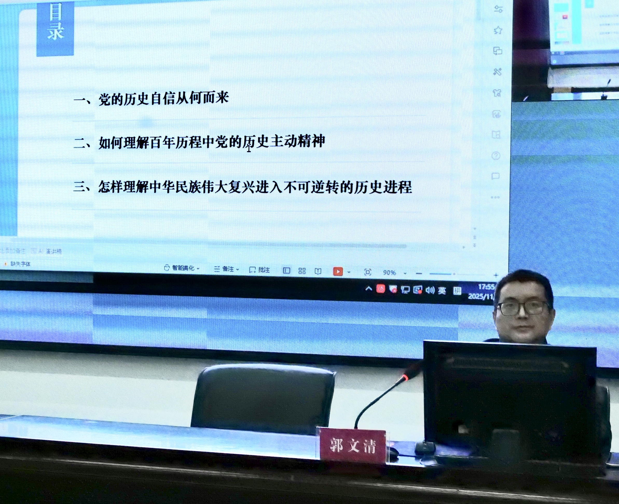 党委委员、纪委书记郑雄授课